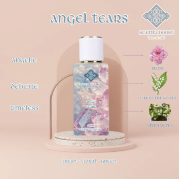 of orris, fig, and poppy. The base reveals a rich blend of tonka bean, heliotrope, and barley, creating a deep, sensual scent